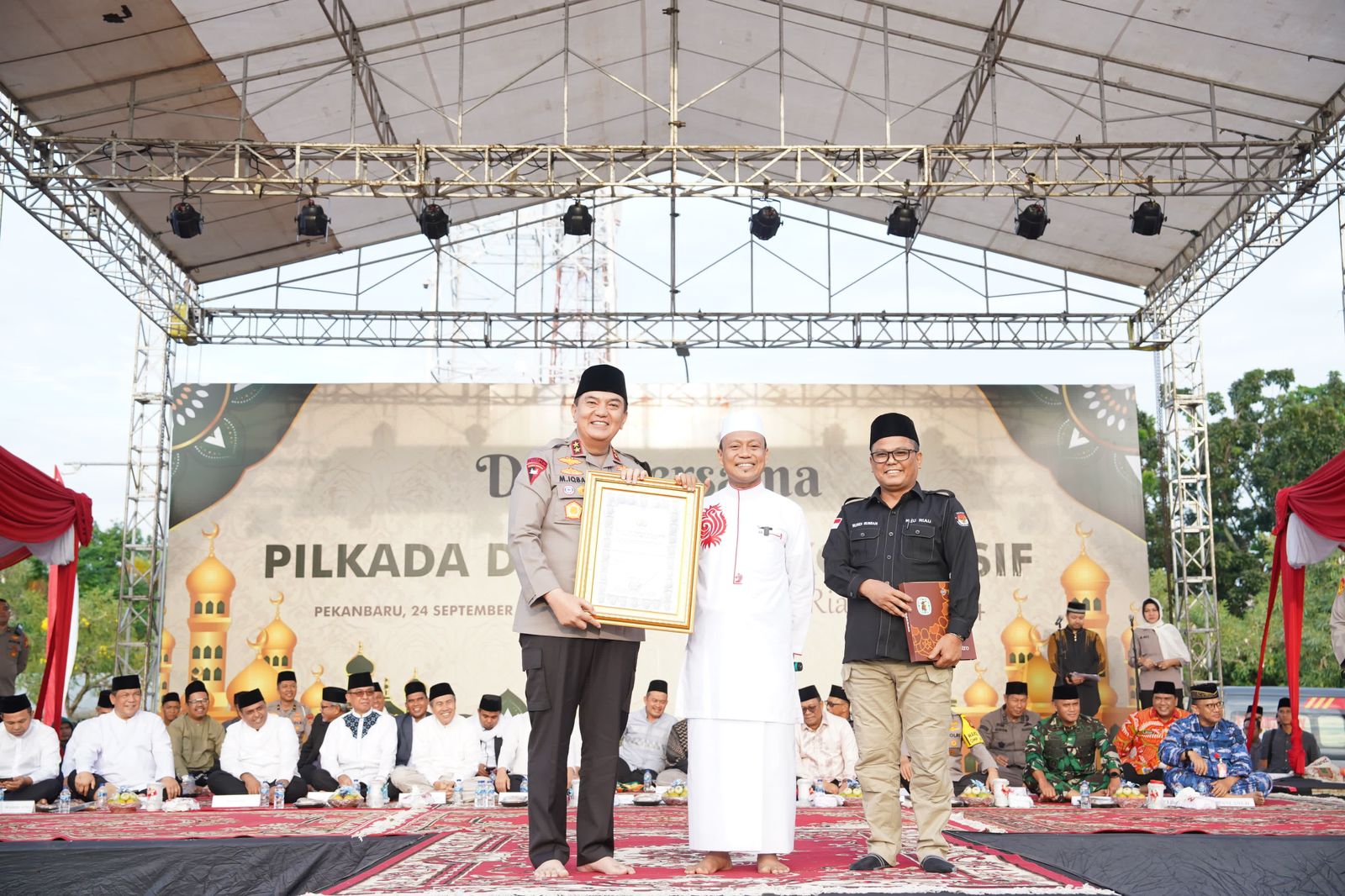 PEKANBARU, KUJANGPOST com – Polda Riau menggelar doa bersama dalam rangka mewujudkan Pilkada damai dan kondusif di halaman depan Mapolda Riau, Selasa (24/9/2024) pagi. Doa bersama ini dihadiri ustad kondang Das’ad Latif yang didatangkan khusus untuk memberikan siraman rohani.