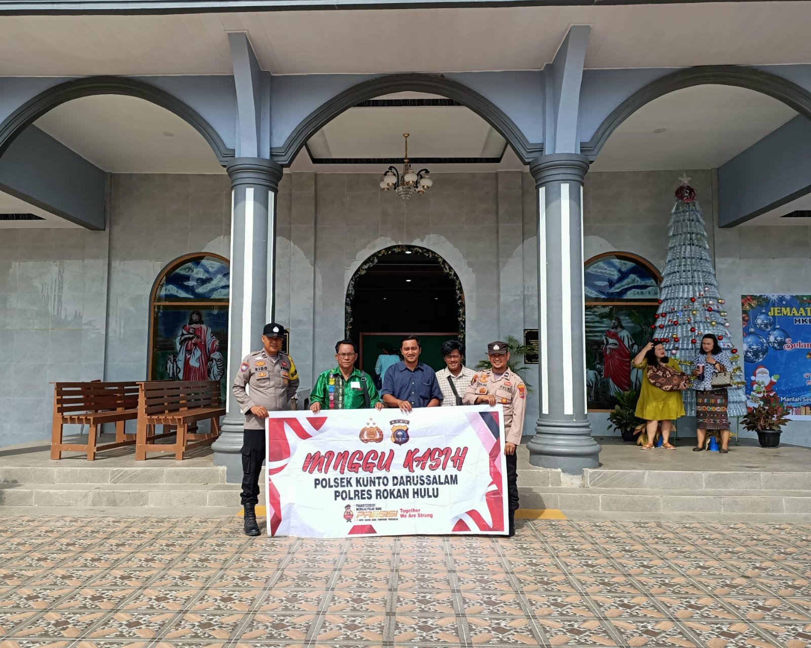 Rokan Hulu | KUJANGPOST.com-Polsek Kunto Darussalam Polres Rokan Hulu melaksanakan Program Minggu Kasih melalui kegiatan patroli dan dialog kamtibmas di Gereja HKBP Sei Intan, Kelurahan Kota Lama, Kecamatan Kunto Darussalam, Minggu (21/12/2025).