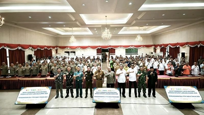 PEKANBARU, || KUJANGPOST.com – Demi menjamin kelancaran dan keamanan perayaan Idulfitri 1446 H, Wakil Kepala Kepolisian Daerah (Wakapolda) Riau, Brigjen Pol. Adrianto Jossy Kusumo, S.H., M.Han., memimpin Rapat Koordinasi Lintas Sektoral Operasi Ketupat Lancang Kuning 2025. Rapat strategis ini berlangsung di Gedung Balai Serindit, Provinsi Riau, pada Selasa (25/3/2025), dengan dihadiri berbagai unsur Forkopimda, pemangku kepentingan, pimpinan OPD, Pejabat Utama (PJU) Polda Riau, serta jajaran kapolres dan kasat di wilayah hukum Polda Riau.