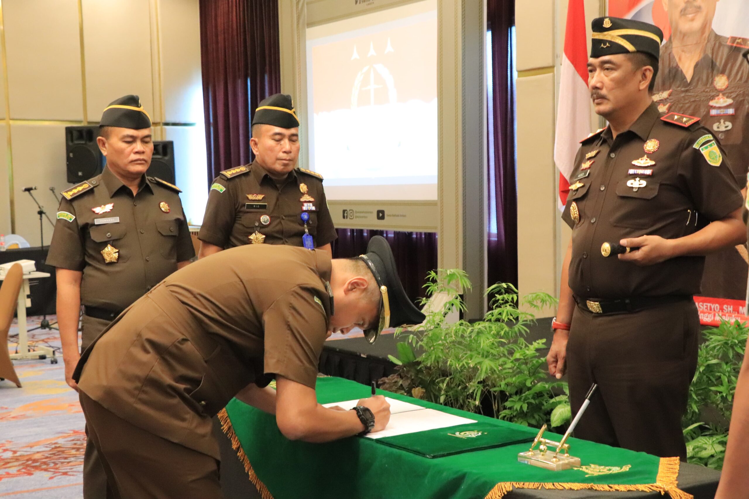Kajati menambahkan dalam sambutannya, berkenaan dan atas dasar itulah maka didalam setiap membuat keputusan pengangkatan, mutasi, promosi, alih tugas dan penempatan pada setiap jabatan oleh unsur Pimpinan dan Pembantu Pimpinan Kejaksaan selalu dilandasi dengan penelahaan dan pertimbangan secara jelas menyeluruh, tidak sekedar hanya bertujuan sebagai bagian dari upaya mendorong pemantapan profesionalitas, peningkatan wawasan dan pengalaman saja tetapi juga sangat mempertimbangkan hal penting dan esensial berkaitan dengan prestasi, dedikasi, loyalitas dan integritas seseorang, sebagai bagian integral guna mewujudkan komitmen tetap merawat dan menjaga secara konsisten, eksistensi serta kebesaran nama dan citra Kejaksaan R.I, agar tidak mencederai dan merusak harkat dan martabat Lembaga milik kita Bersama.