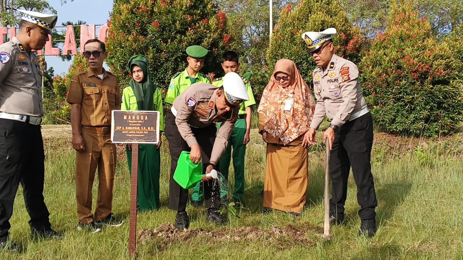 Police Go To School: Satlantas Polres Siak Bagi Helm SNI dan Bibit Pohon kepada Pelajar