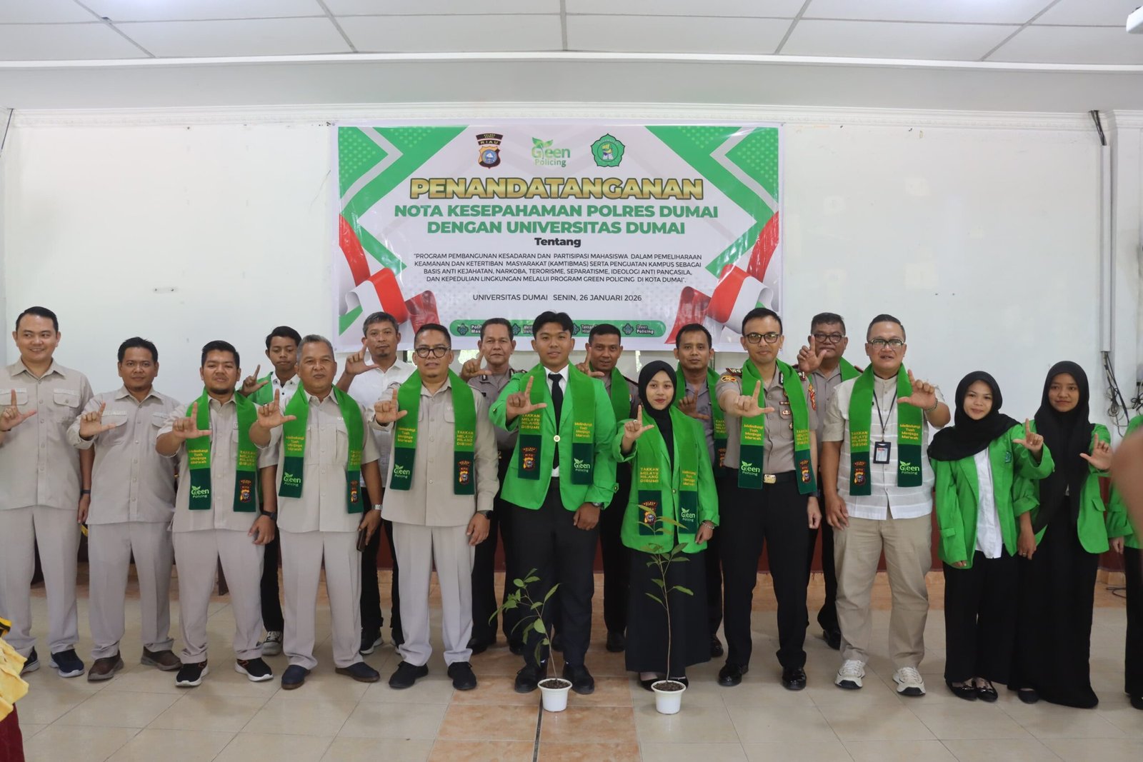 “Nota kesepahaman ini merupakan langkah strategis dalam membangun kesadaran dan partisipasi aktif mahasiswa untuk menjaga keamanan dan ketertiban masyarakat, sekaligus memperkuat peran kampus sebagai benteng pencegahan narkoba, radikalisme, terorisme, serta penguatan ideologi Pancasila dan kepedulian lingkungan melalui Green Policing,” ujar Kapolres Dumai.