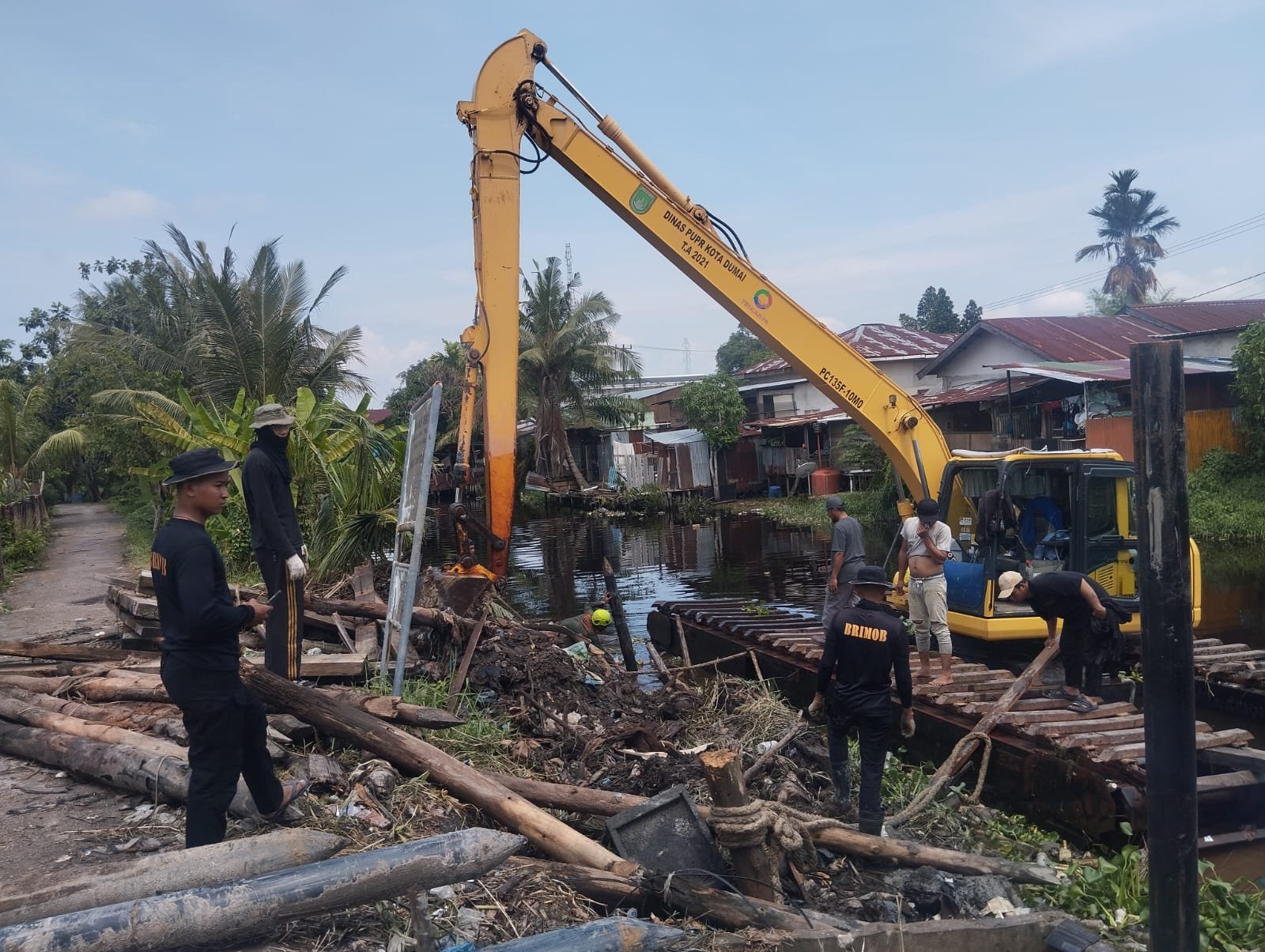pengerjaan di titik ini melibatkan kolaborasi antara 3 personel Polres Dumai, 5 personel BKO Sat Brimob, dan dibantu oleh 4 orang relawan setempat.