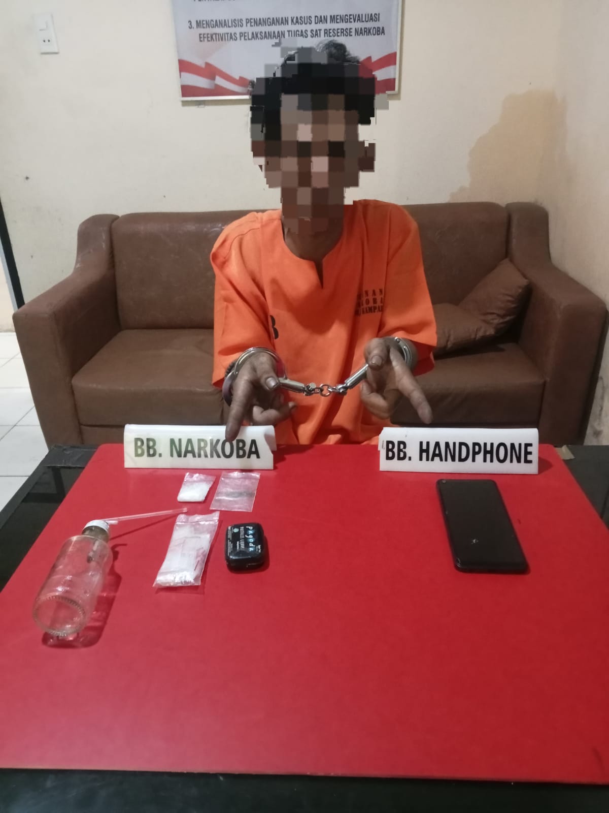 Barang bukti yang diamankan dari tangan tersangka berupa: 1 (Satu) Paket diduga Narkotika jenis Shabu yang dibungkus dengan Plastik bening, bruto 5.32 gram, 1 (Satu) Paket diduga Narkotika jenis Daun Ganja Kering yang dibungkus dengan Plastik bening. bruto 0.32, 1 (satu)Bal pelastik bening, 1 (satu) Buah Kotak permen merk pagoda warna hitam, 1 (satu) Buah Alat Hisap (bong), 1 (satu) Unit Handphone OPPO Warna Hitam.