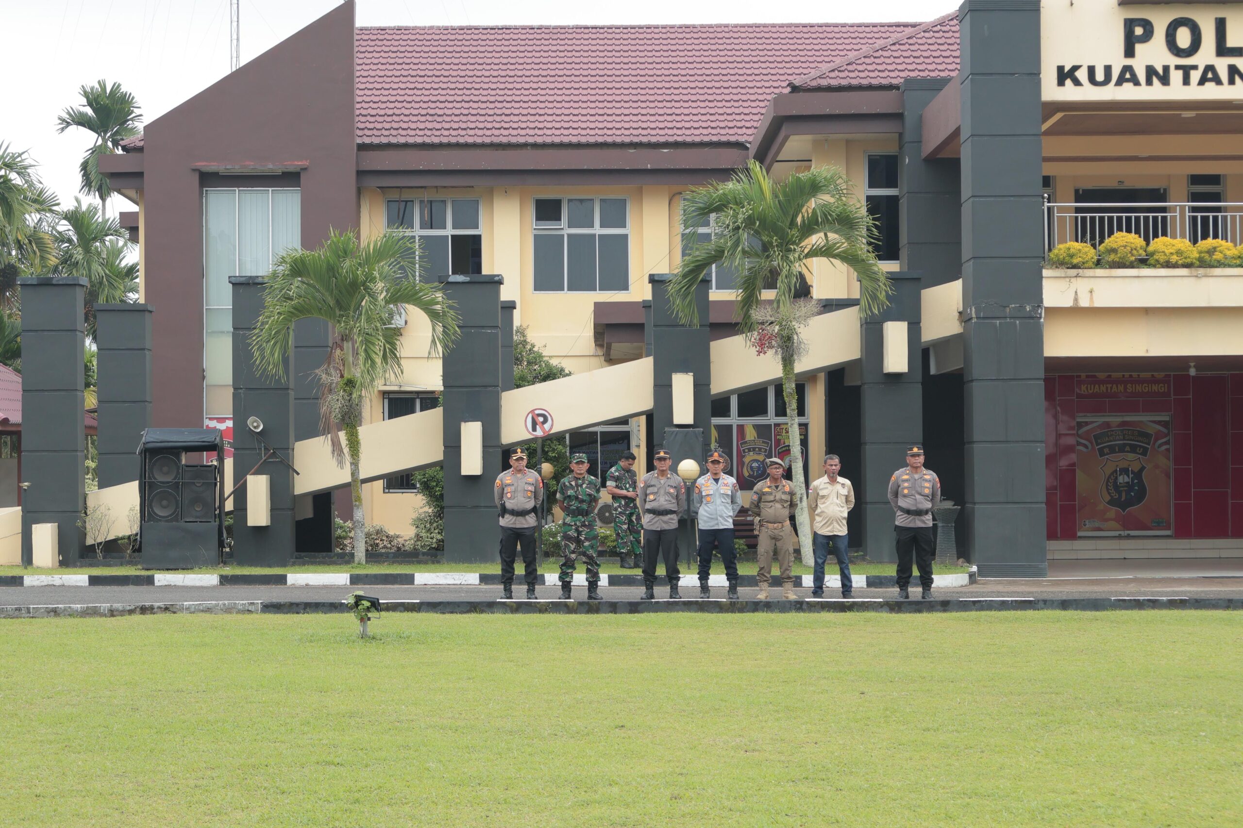 Kapolres Kuantan Singingi AKBP Angga F. Herlambang, S.I.K., S.H., menyampaikan pentingnya kesiapan seluruh personel dalam mengamankan prosesi pelantikan Bupati dan Wakil Bupati Kuantan Singingi periode 2025-2030. Ia menyampaikan bahwa sejak 27 Agustus 2024, Polres Kuansing bersama jajaran telah melaksanakan Operasi Mantap Praja 2024 untuk mengamankan seluruh tahapan Pilkada, mulai dari pendaftaran calon, kampanye, masa tenang, pemungutan suara, hingga sidang pleno di tingkat kecamatan dan kabupaten.