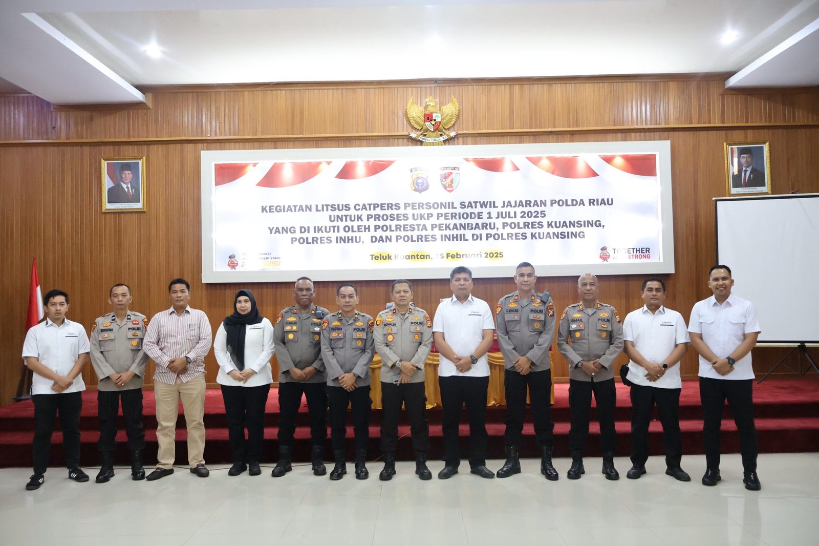 KUANTANSINGINGI, KUJANGPOST.com – Polres Kuantan Singingi (Kuansing) menggelar kegiatan Penelitian Khusus Catatan Pribadi (Litsus Catpers) bagi personel Satuan Wilayah (Satwil) jajaran Polda Riau dalam rangka proses Usulan Kenaikan Pangkat (UKP) periode 1 Juli 2025. Kegiatan ini berlangsung pada Selasa, (25/2/2025), mulai pukul 09.30 WIB di Aula Sanika Satyawada Polres Kuansing.
