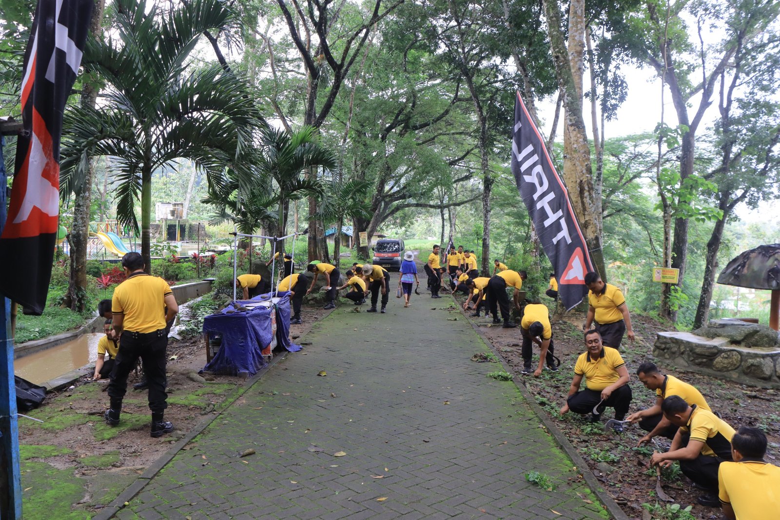 Kerja bakti difokuskan pada pembersihan lingkungan kawasan wisata, meliputi area taman, jalur pengunjung, serta fasilitas umum, guna menciptakan lingkungan yang bersih, sehat, dan nyaman bagi masyarakat serta wisatawan.
