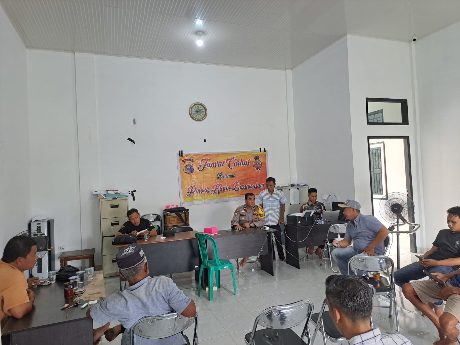 KUNTO DARUSSALAM,KUJANGPOST.com -– Polsek Kunto Darussalam kembali menggelar program Jum’at Curhat dan Temu Ramah bersama masyarakat Desa Kota Intan, Kecamatan Kunto Darussalam, Kabupaten Rokan Hulu. Kegiatan yang berlangsung sejak pukul 09.00 WIB ini bertujuan untuk mempererat hubungan antara Polri dan masyarakat serta menampung berbagai aspirasi warga terkait situasi keamanan dan ketertiban masyarakat (Kamtibmas).