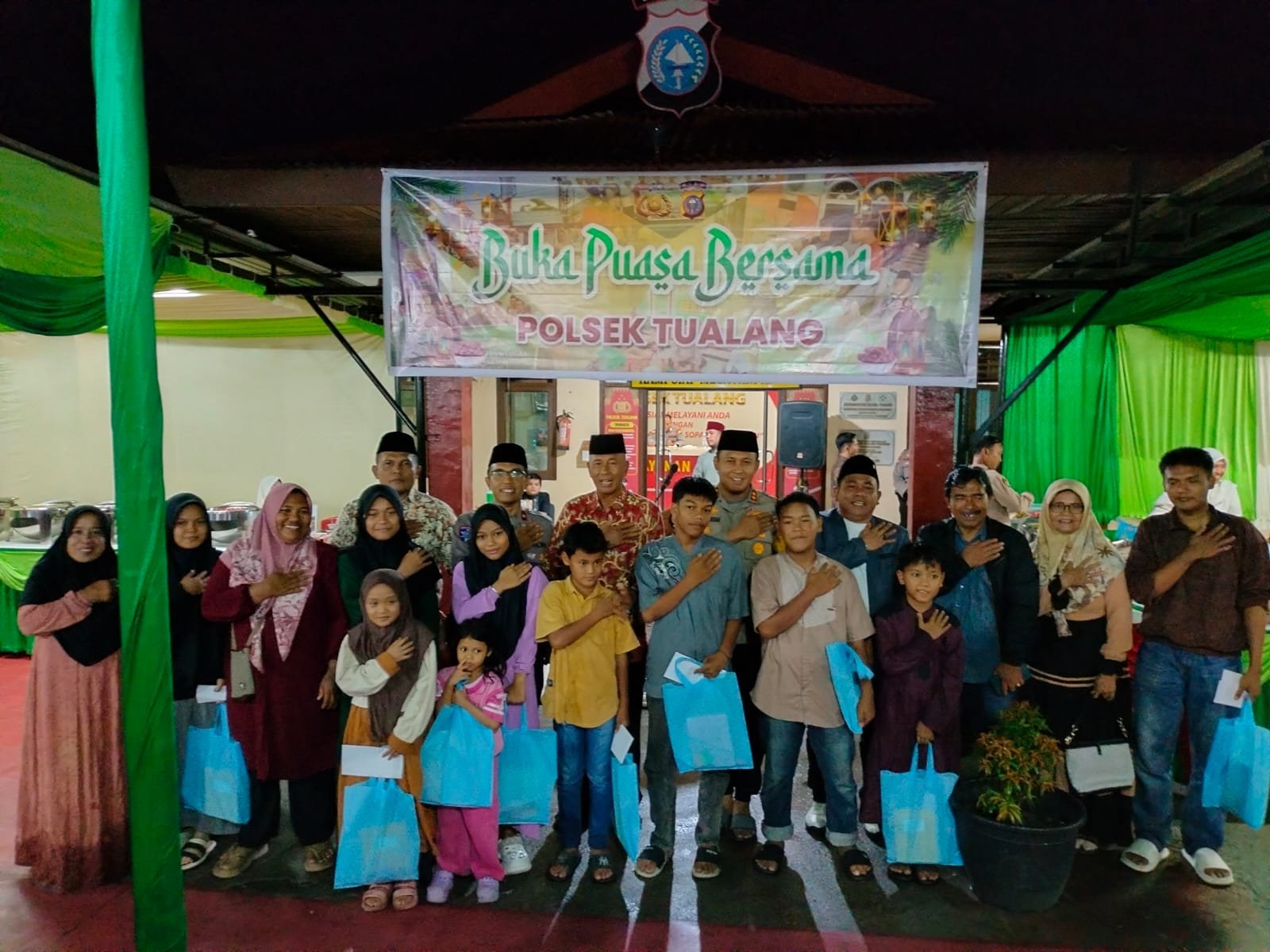 PERAWANG,  KUJANGPOST.com – Dalam rangka mempererat tali silaturahmi di bulan suci Ramadhan 1447 H / 2026 M, Polsek Tualang menggelar kegiatan buka puasa bersama dengan unsur pemerintah, tokoh masyarakat, perusahaan, serta anak yatim di halaman Mako Polsek Tualang, Jalan Raya Km 5, Kelurahan Perawang, Kecamatan Tualang, Kabupaten Siak, Sabtu (14/3/2026) sore.