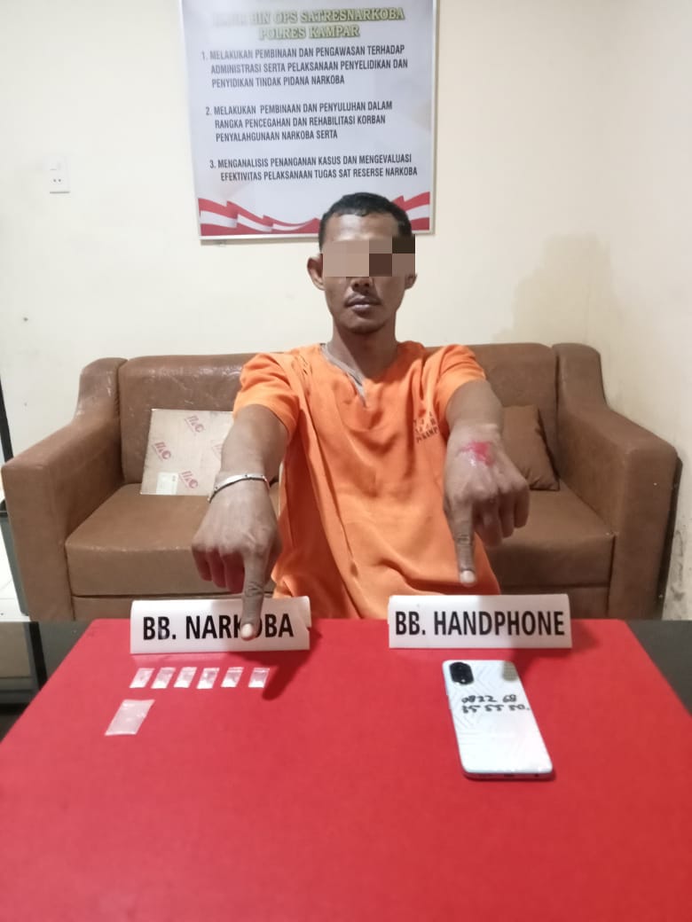 Penangkapan ini berawal, saat Tim Opsnal Sat Resnarkoba Polres Kampar mendapatkan informasi dari masyarakat bahwa di Kelurahan Langgini sering terjadi peredaran Narkoba.