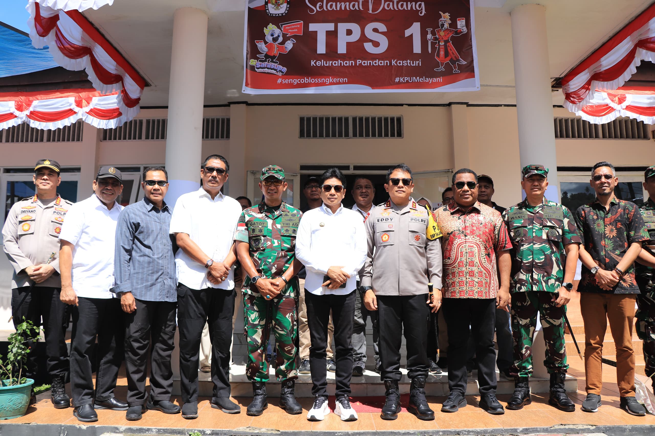 Pj. Gubernur Maluku Ir. Sadali Ie, M.Si memimpin kegiatan monitoring tersebut, bersama dengan jajaran FORKOPIMDA Provinsi Maluku lainnya yakni Ketua DPRD Provinsi Maluku Benhur George Watubun, S.T, Kapolda Maluku Irjen Pol. Drs. Eddy Sumitro Tambunan, M.Si, Pangdam XV/Pattimura Mayjen TNI Putranto Gatot Sri Handoyo, S.Sos.,M.M, Kabinda Maluku Kolonel Paskhas Drs. R. Harys Soeryo Mahendro, M.M, Danlantamal IX Ambon Brigjen TNI (Mar) Suwandi, S.A.P.,M.M, Perwakilan DPD RI Bisri AS Shiddiq Latuconsina, S.Sos, Ketua KPU Provinsi Maluku M. Shaddek Fuad dan Ketua Bawaslu Provinsi Maluku Dr. Subair, M.Si.