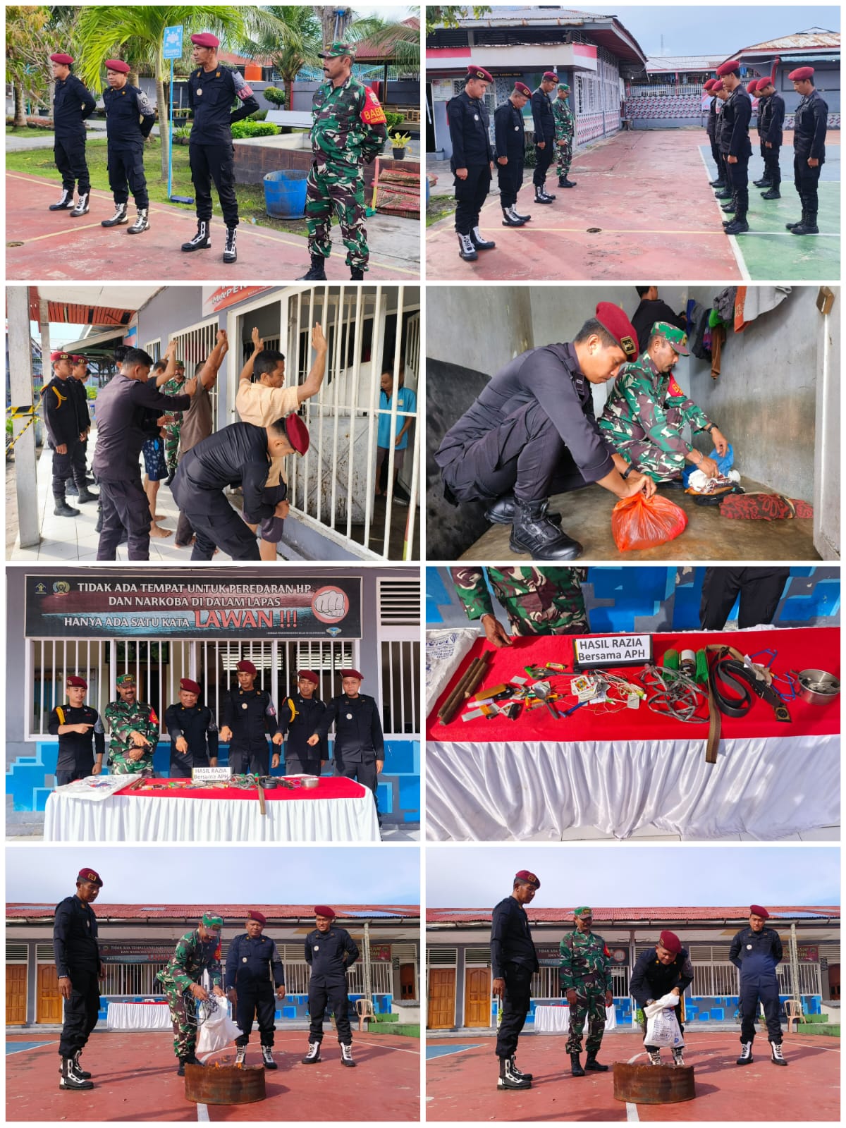 Lapas Selatpanjang Lakukan Razia Blok Hunian Serta Pemusnahan Barang Bukti Hasil Razia Bersama APH