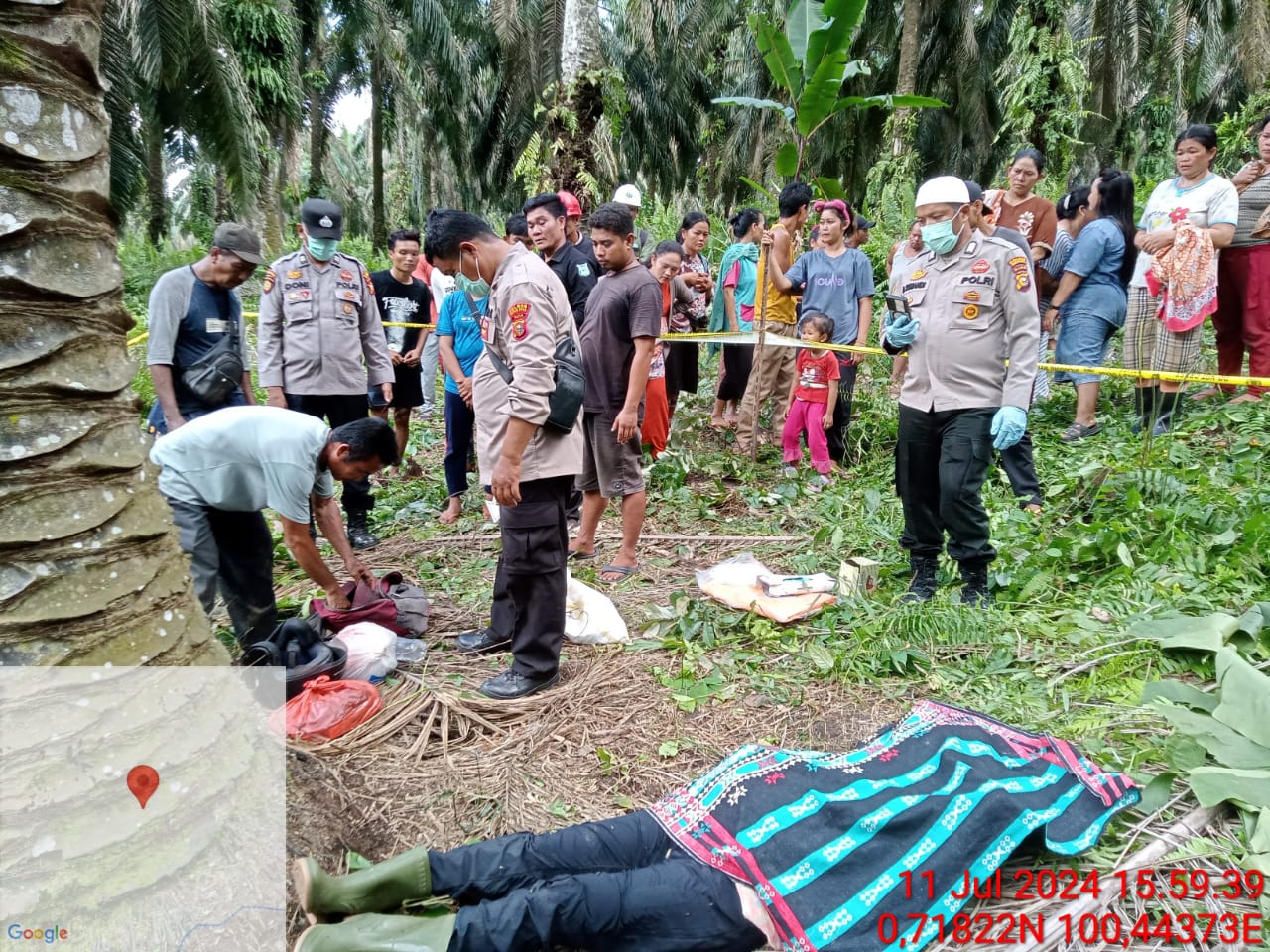 Karena, hal tersebut Suaminya mencari Istrinya di sekitar Areal Kebun setelah mencari dijumpai istrinya sudah tergeletak dibawah Pohon Sawit.