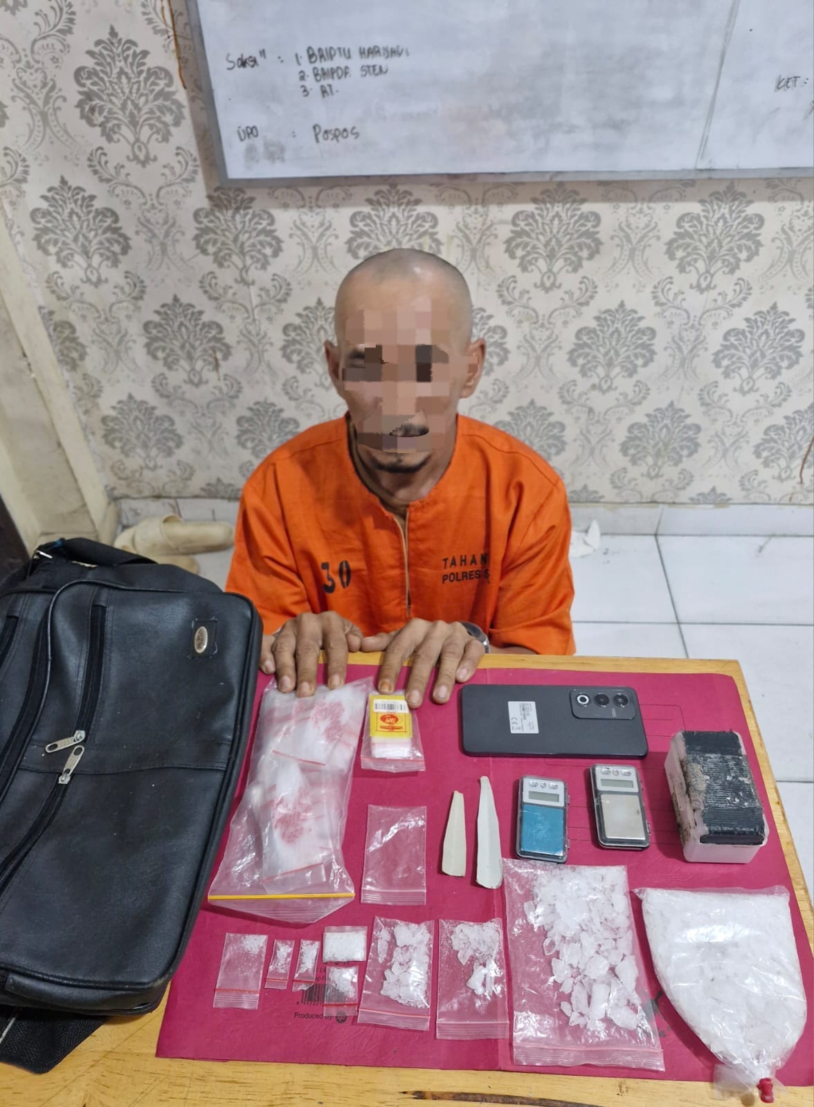 LM (51) diamankan Satres Narkoba Polres Siak dengan barang bukti 9 (sembilan) Paket Narkotika jenis Shabu dengan berat kotor 168,55 (seratus enam puluh delapan koma lima puluh lima) gram.