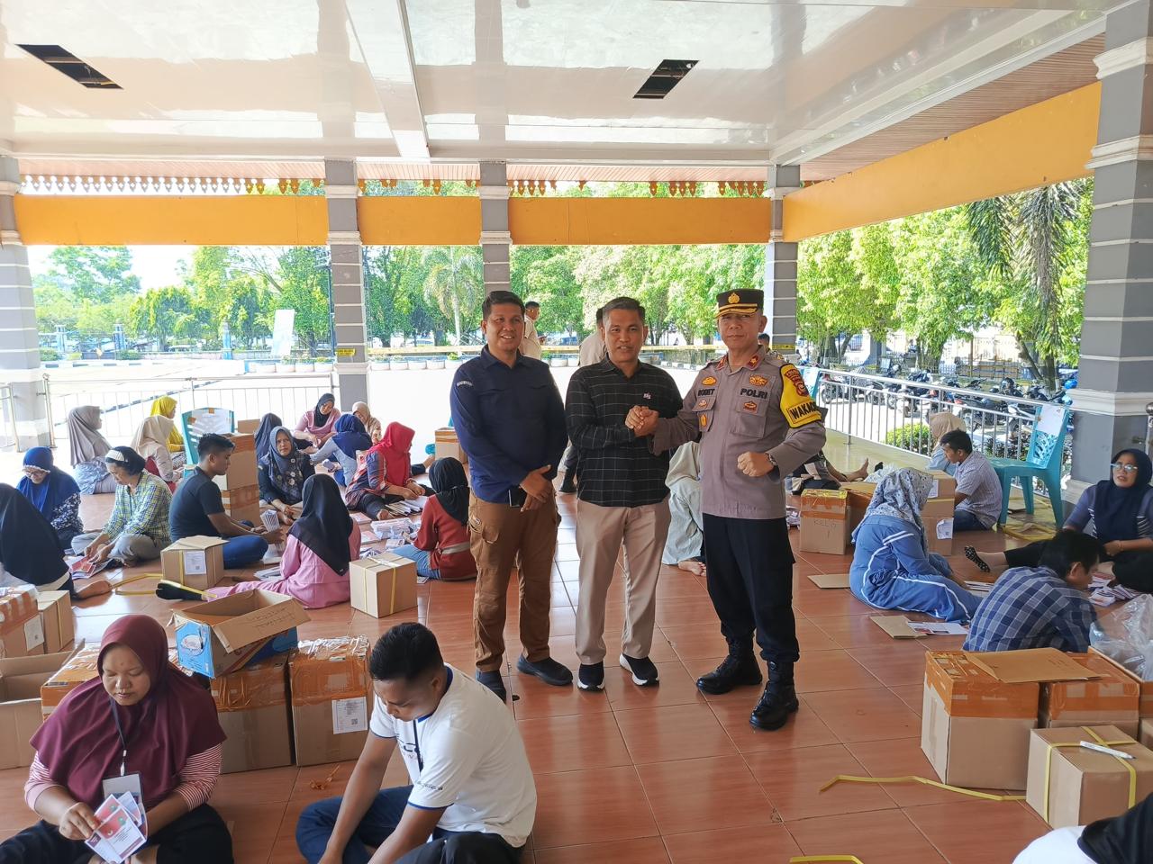 KOMPOL Robet Arizal, S.Sos, turun langsung ke lokasi untuk memastikan keamanan dan ketertiban selama proses pelipatan surat suara berlangsung. Beliau melakukan pengecekan terhadap kesiapan para personil keamanan yang bertugas, sekaligus memantau seluruh rangkaian proses pelipatan. Proses ini melibatkan sejumlah personil kepolisian yang ditugaskan untuk mengawal dan menjaga ketertiban selama kegiatan yang dianggap krusial untuk kelancaran pelaksanaan Pilkada serentak ini.